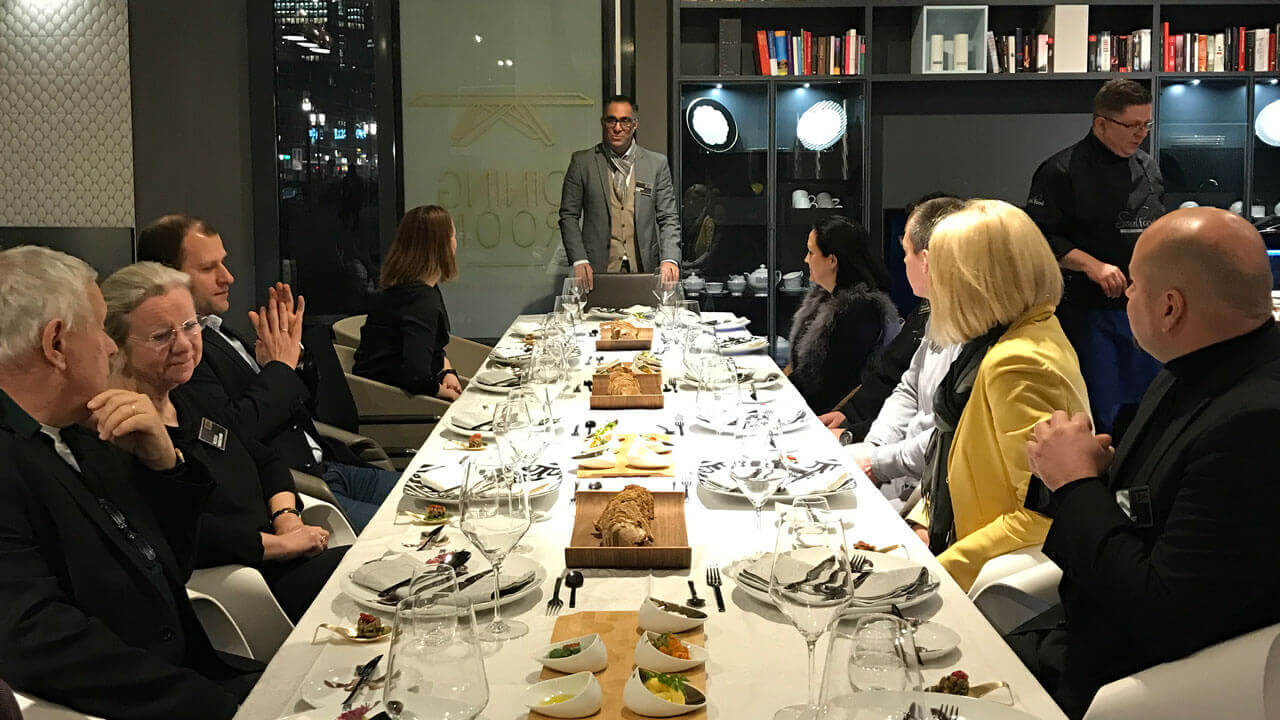 In cooperation with our industrial partner DURAVIT, ROC DESIGN invited selected renowned architects and designers to our showroom. A first meet and greet and a talk given by Leona Vervoort (Duravit) and Dr. Eltahmash Israr (Head of Design at Republic of Contemporary .Design) was followed by a tour of the ROC DESIGN showroom. Later in the evening master chef Thomas Funke of Soulfood himself orchestrated a 5-course dinner.